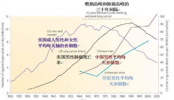 當(dāng)時(shí)那個(gè)老師一副烏鴉嘴的樣子,讓我特別不爽。但是美國(guó)也走過這樣的路,肺癌高發(fā)和高吸煙率之間,有一個(gè)三十年的隔斷區(qū)。