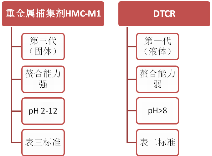 重金屬捕集劑,是一種與重金屬離子強力螯合的化工藥劑,現已發(fā)展到第三代,是由湛清環(huán)保自主研究的產品HMC-M1。第三代重金屬捕集劑M1,已逐漸取代市面上的液體重金屬捕集劑DTCR,因為性能更優(yōu),除鎳效果更好,價格更便宜。