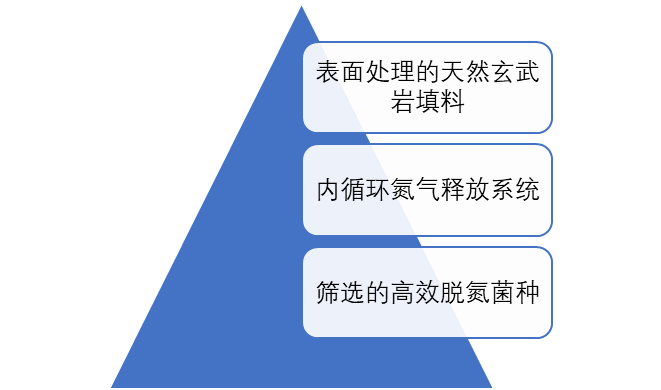針對(duì)硝態(tài)氮引起的總氮超標(biāo),需要通過(guò)高效脫氮設(shè)備進(jìn)行解決降低總氮。湛清環(huán)保自主研發(fā)一套反應(yīng)器結(jié)構(gòu),以天然玄武巖作為主要填料,通過(guò)對(duì)天然玄武巖進(jìn)行表面處理,使得反硝化微生物能夠大量附著在表面,提升了微生物的密度;同時(shí),在內(nèi)部設(shè)計(jì)了內(nèi)循環(huán)脫氮系統(tǒng),使得反應(yīng)以后產(chǎn)生的氮?dú)饽軌蚩焖籴尫懦鋈?,加大微生物反?yīng)空間,減少反應(yīng)死區(qū)。第三,湛清環(huán)保獨(dú)特培養(yǎng)的反硝化菌種能夠快速適應(yīng)高硝態(tài)氮廢水的環(huán)境,加快反應(yīng)速率。