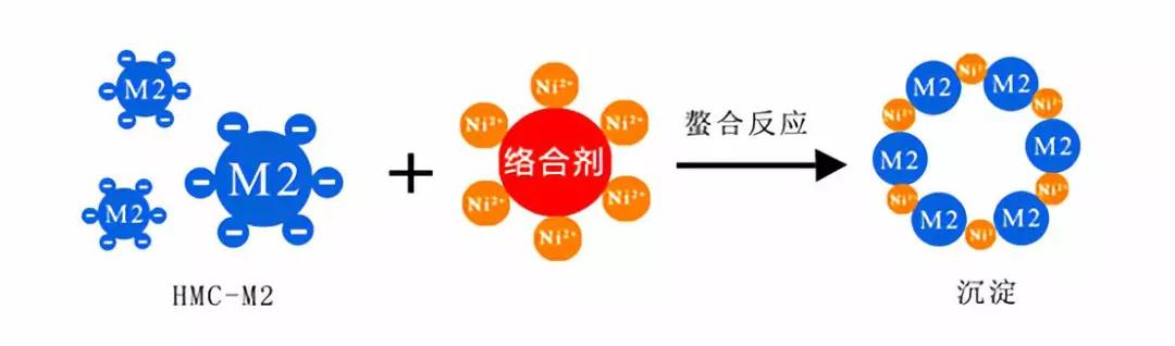 使用高效除鎳劑HMC-M2進(jìn)行鰲合反應(yīng),能夠與鎳形成完全不溶于水的螯合沉淀物鎳離子穩(wěn)定達(dá)標(biāo)0.1mg/L以下。