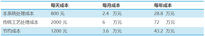 對于產(chǎn)水量為20t/d的鋅鎳合金廠,傳統(tǒng)處理工藝的噸水成本~100元/噸,采用該工藝每年可節(jié)省43萬,且不會因為廢水外排問題影響生產(chǎn)及產(chǎn)品品質(zhì):