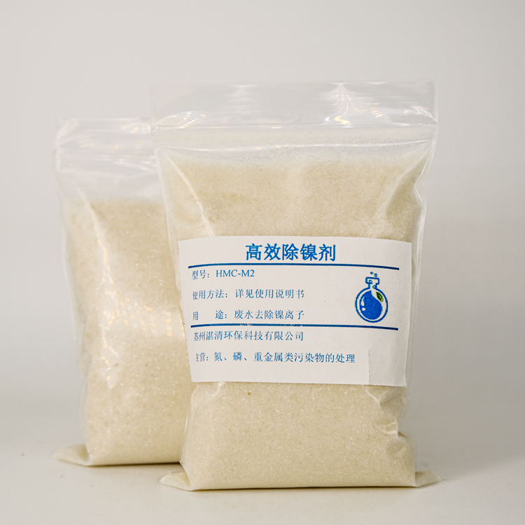 電鍍含鎳廢水區(qū)別于普通的重金屬污染物,其中絡(luò)合鎳去除難度較大,傳統(tǒng)式化學沉淀法投加重金屬捕捉劑,存在可逆反應(yīng),絡(luò)合鎳廢水處理效果并不理想,湛清自主研發(fā)的HMC-M2高效除鎳劑,通過不同的螯合基團螯合重金屬離子;同時,在有著本體結(jié)構(gòu)的聚合物的作用下,通過絮凝和凈捕集提高沉淀速度和去除率;克服了傳統(tǒng)式化學沉淀操作藥劑線性螯合沉淀的缺點,投加高效除鎳劑后廢水中的絡(luò)合鎳無需破絡(luò)可直接沉淀去除。